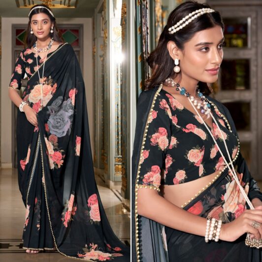 BLACK FLORAL SAREE PREORDER SPECIAL LNB7007BLK