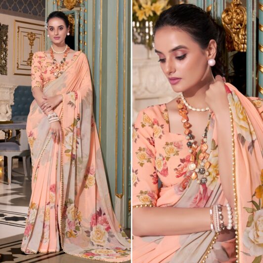 PEACH FLORAL SAREE PREORDER SPECIAL LNB7007PEC