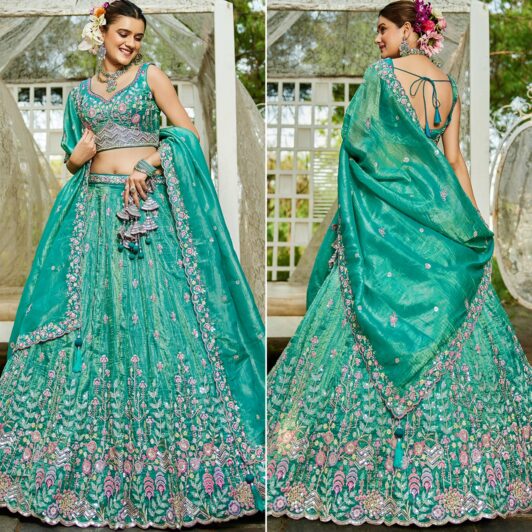SEA GREEN SEQUIN LEHENGA PREORDER SPECIAL HOP6170SG