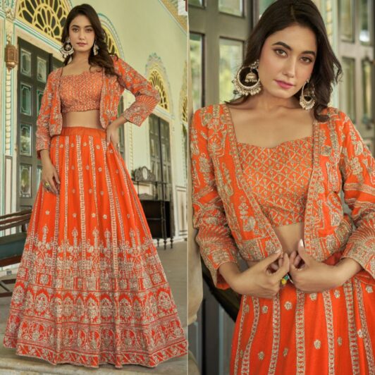 ORANGE READY MADE CHINON LEHENGA PREORDER SPECIAL SEN3101B