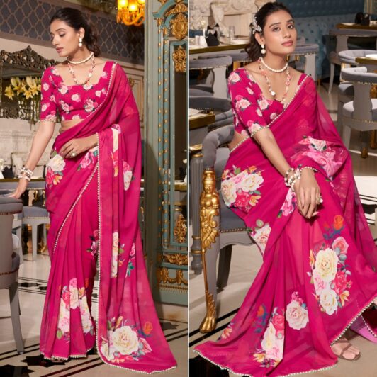 PINK FLORAL SAREE PREORDER SPECIAL LNB7007PNK