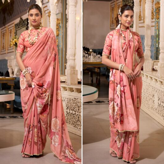 PEACH FLORAL SAREE PREORDER SPECIAL LNB7007PEC