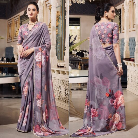 GREY FLORAL SAREE PREORDER SPECIAL LNB7007GRY