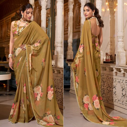 BROWN FLORAL SAREE PREORDER SPECIAL LNB7007BRN