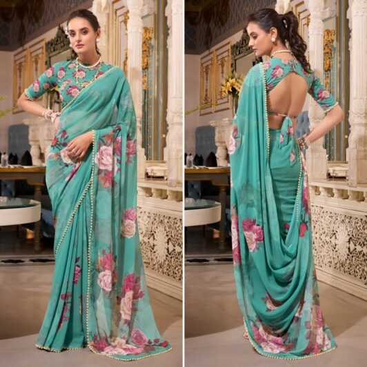 GREEN FLORAL SAREE PREORDER SPECIAL LNB7007GRN
