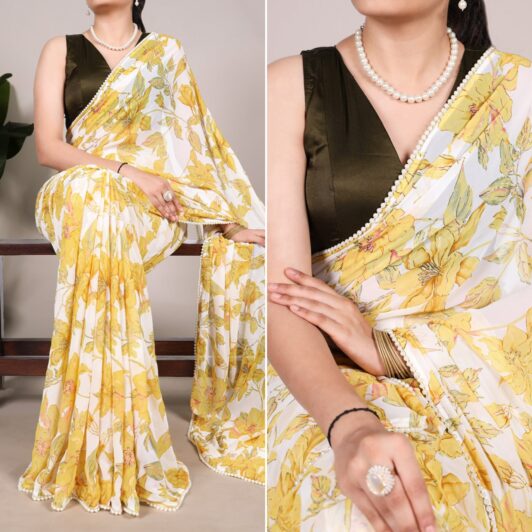 YELLOW WEIGHTLESS FLORAL SAREE PREORDER SPECIAL LNB7006YEL