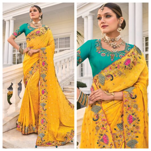 YELLOW CREPE JACQUARD SAREE PREORDER SPECIAL MN7809
