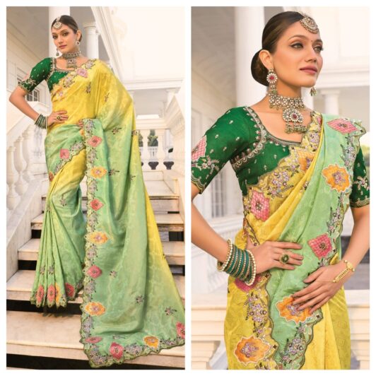 LEMON & GREEN CREPE JACQUARD SAREE PREORDER SPECIAL MN7805