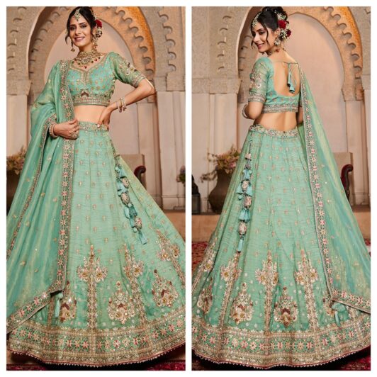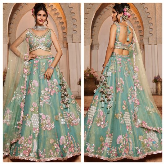 SEA GREEN FUSION NET LEHENGA PREORDER SPECIAL HOP6118SG