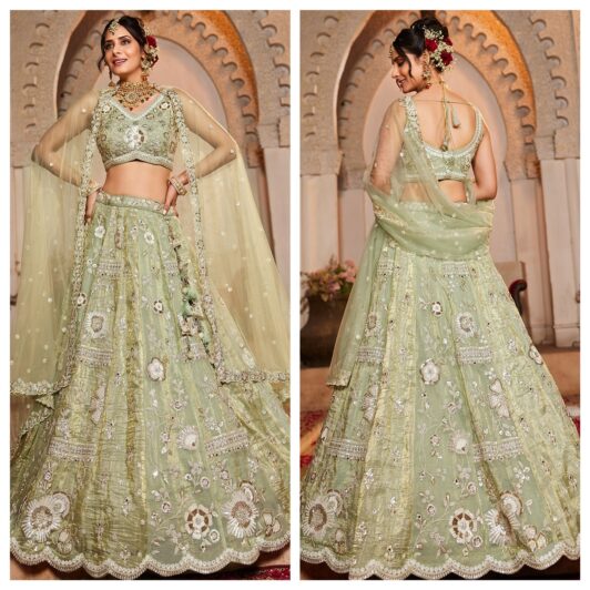 LIME GREEN TISSUE SILK LEHENGA PREORDER SPECIAL HOP6108LG
