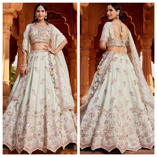 OFF WHITE TISSUE SILK LEHENGA PREORDER SPECIAL HOP6108OWT