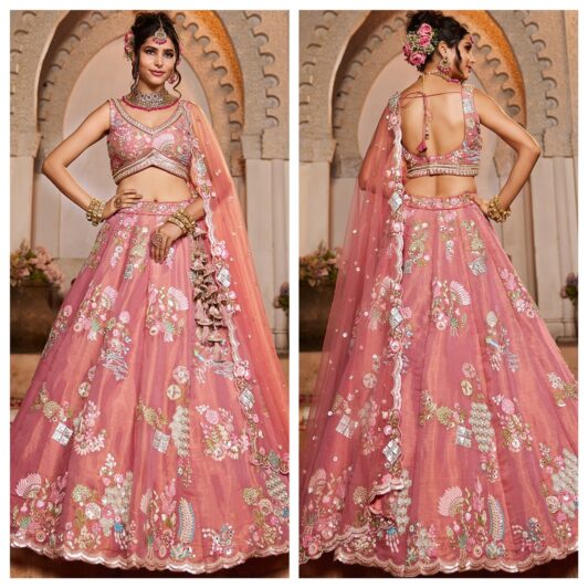 CORAL TISSUE SILK LEHENGA PREORDER SPECIAL HOP6109COR