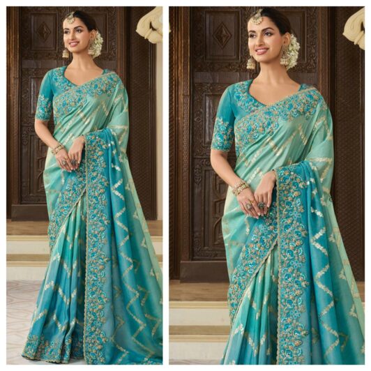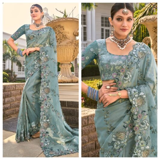 SEA GREEN ORGANZA SAREE PREORDER SPECIAL MN7803