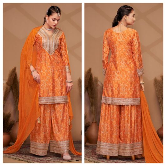 ORANGE BANDHANI SHARARA SUIT PREORDER SPECIAL GUL2151
