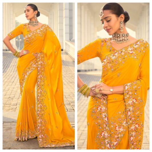MUSTARD CREPE SAREE PREORDER SPECIAL MN7802