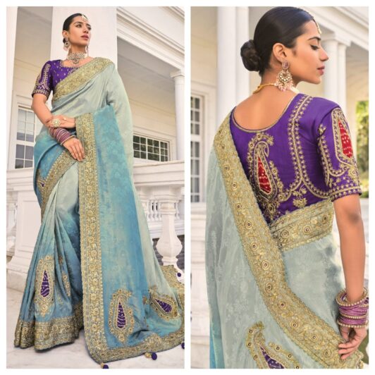 GREY & BLUE CREPE JACQUARD SAREE PREORDER SPECIAL MN7801