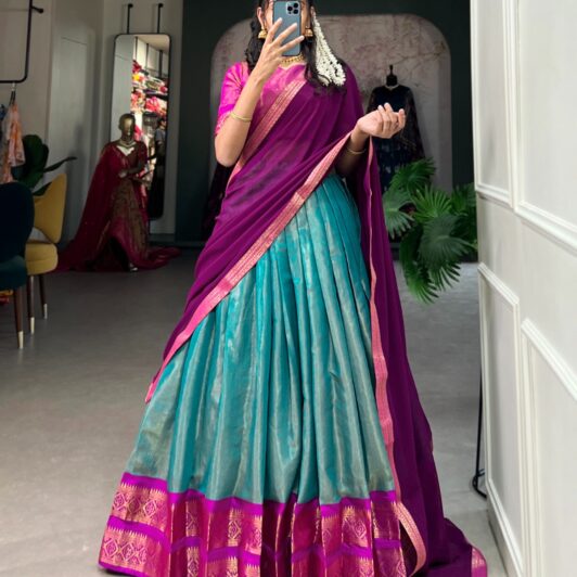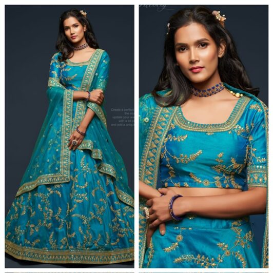 TEAL BLUE ART SILK LEHENGA PREORDER SPECIAL ZEE7807