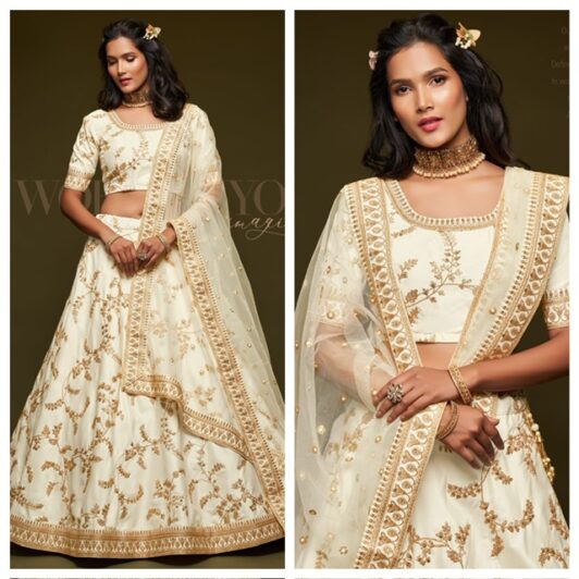 OFF WHITE BLUE ART SILK LEHENGA PREORDER SPECIAL ZEE7808