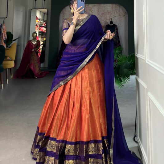 ORANGE KANCHIPURAM SILK LEHENGA PREORDER SPECIAL LNB2001ONG