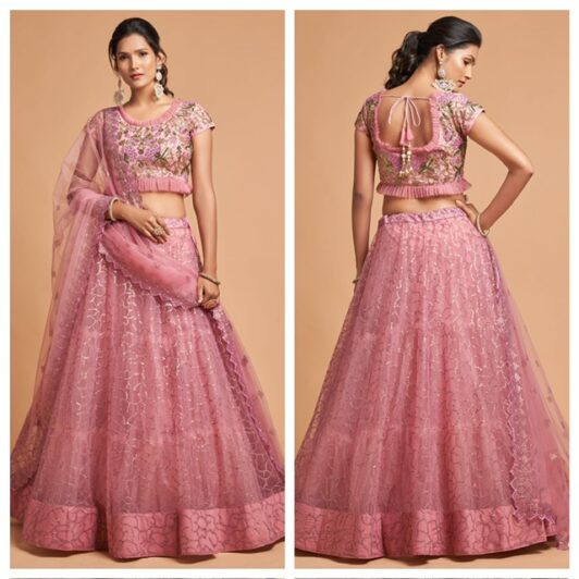 New designer organza silk floral lehenga with sequin and zari embroidery work