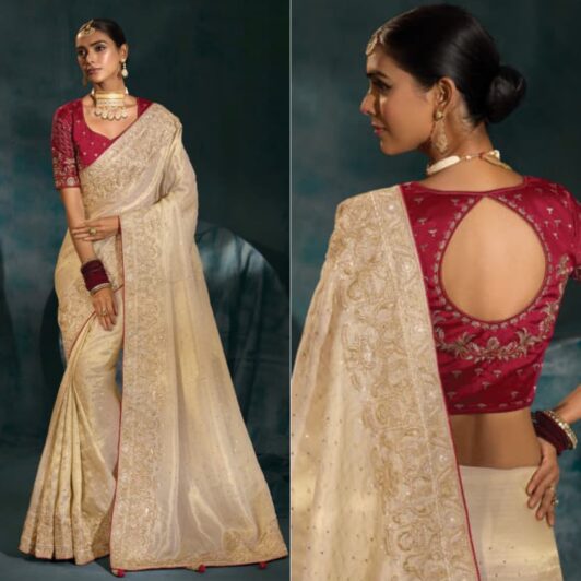 CREAM ZARI SILK SAREE PREORDER SPECIAL MN7902
