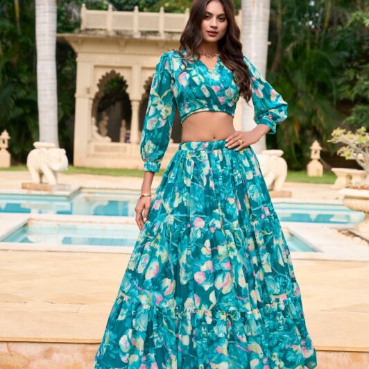 TEAL FLORAL READY MADE CO-ORD SET PREORDER SPECIAL LNB1135TEL