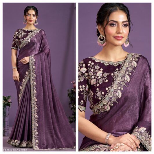 CREPE SATIN SILK CRUSH SAREE PREORDER SPECIAL MOH24808
