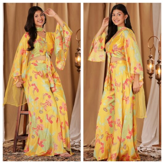 YELLOW CHINON SILK READY MADE PALLAZO SUIT PREORDER SPECIAL AMO4002