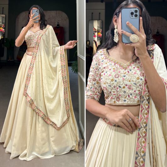 CREAM GEORGETTE LEHENGA PREORDER SPECIAL LNB1400OWT