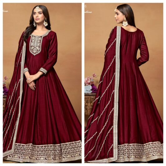 MAROON ART SILK GOWN PREORDER SPECIAL ANA8904