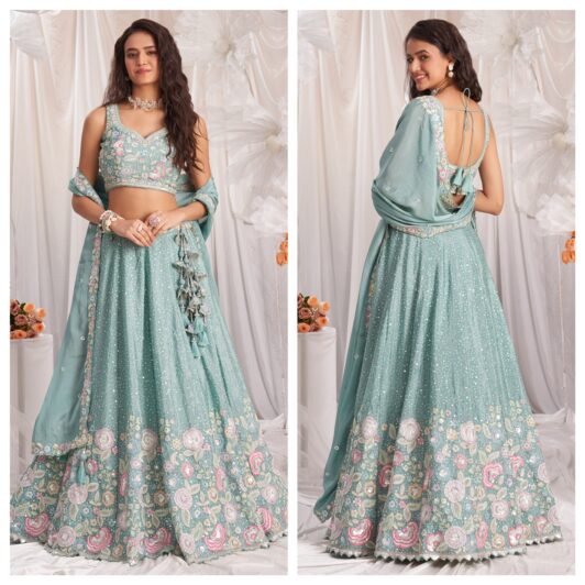 GREEN GEORGETTE SEQUIN LEHENGA PREORDER SPECIAL ZEE402