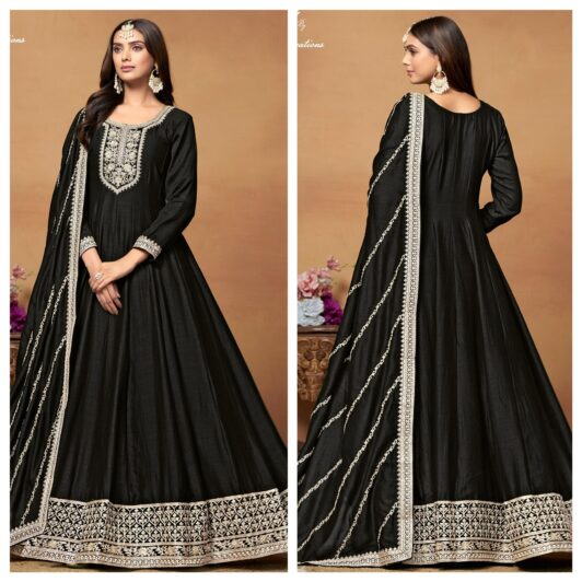 BLACK ART SILK GOWN PREORDER SPECIAL ANA8901