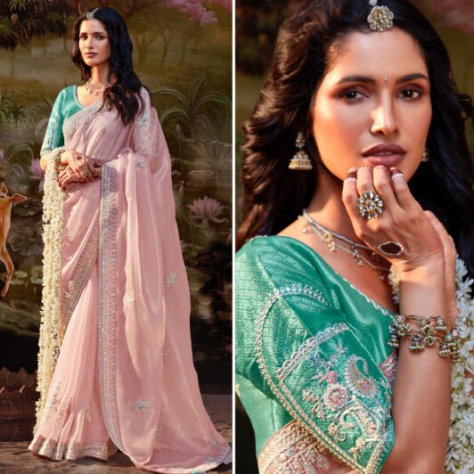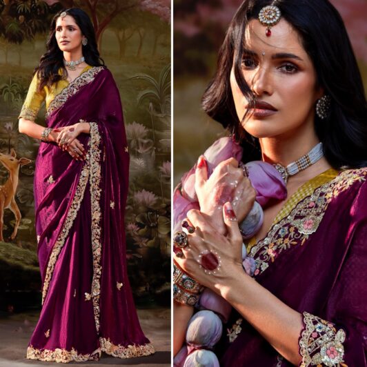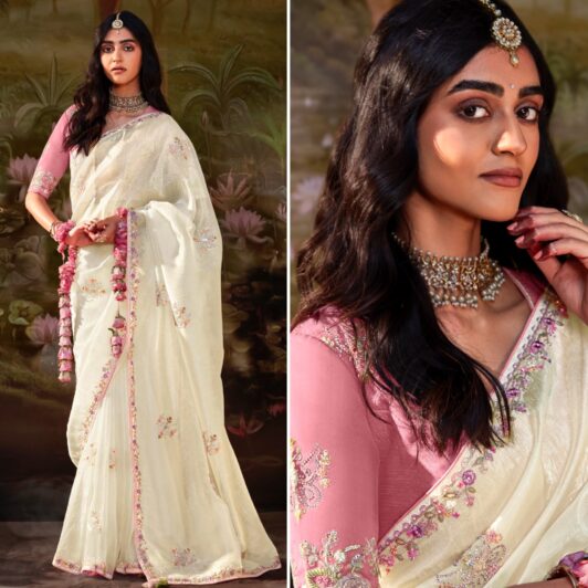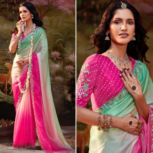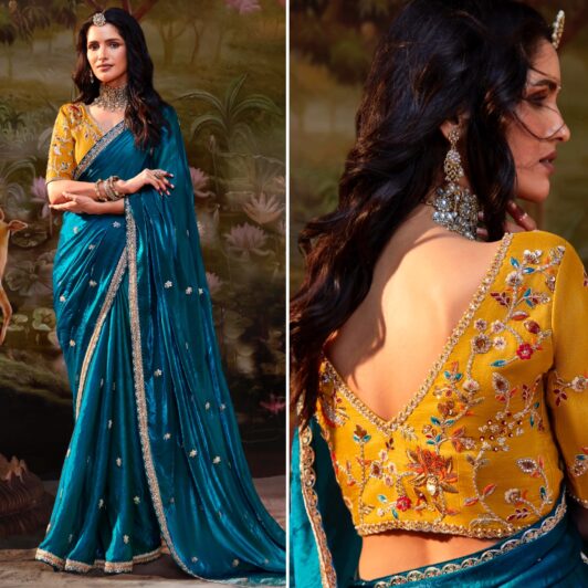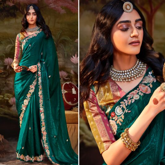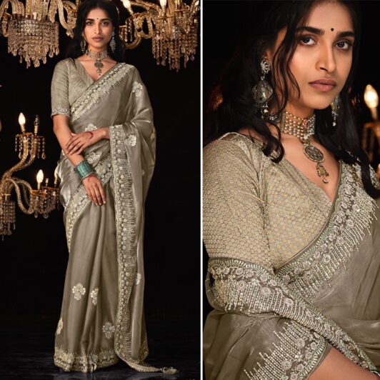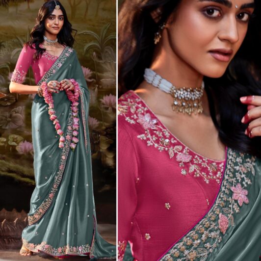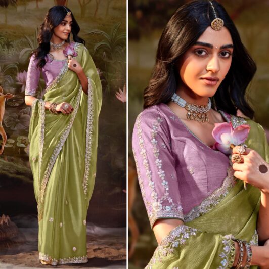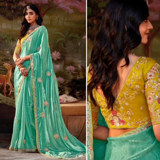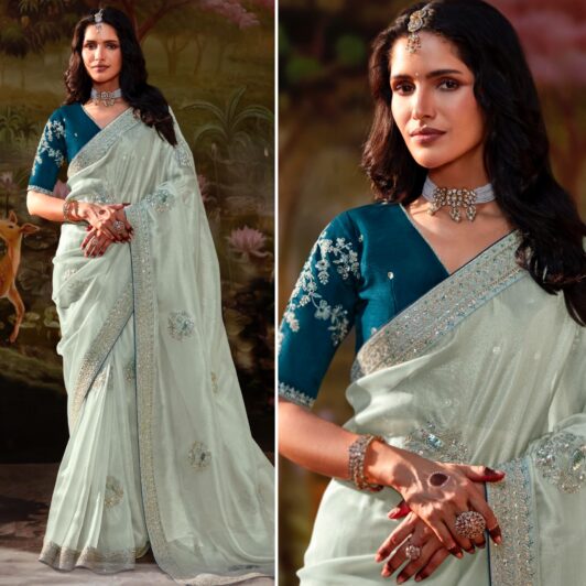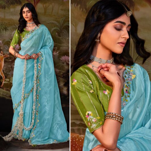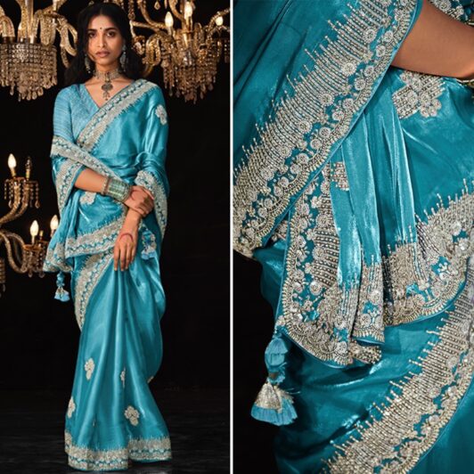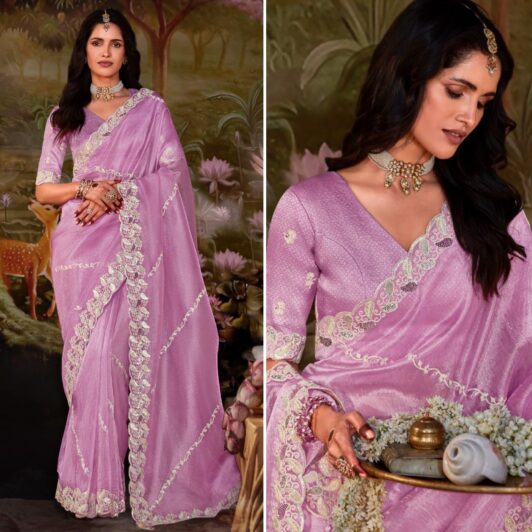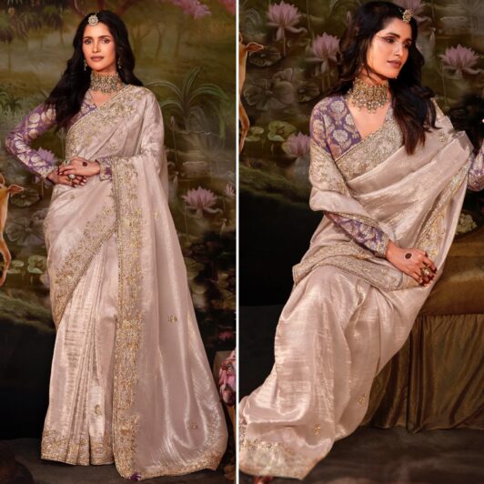 New designer glass tissue silk saree with thread and sequin embroidery work