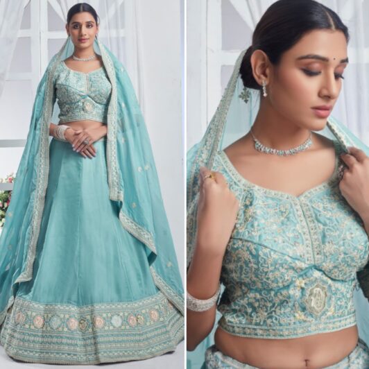 New designer premium organza silk lehenga with sequin and multi embroidery work