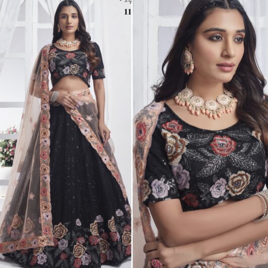 New designer soft net lehenga with multiple sequin and thread embroidery work