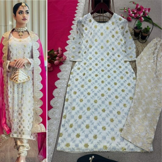 OFF WHITE FLORAL ORGANZA SILK LEHENGA READY TO DISPATCH 7601