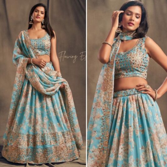 SKY BLUE FLORAL ORGANZA SILK LEHENGA READY TO DISPATCH FLO1