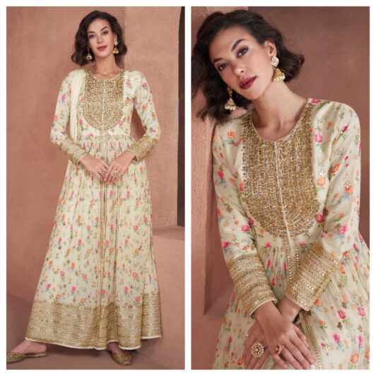 CREAM FLORAL READY MADE SUIT READY TO DISPATCH 5298