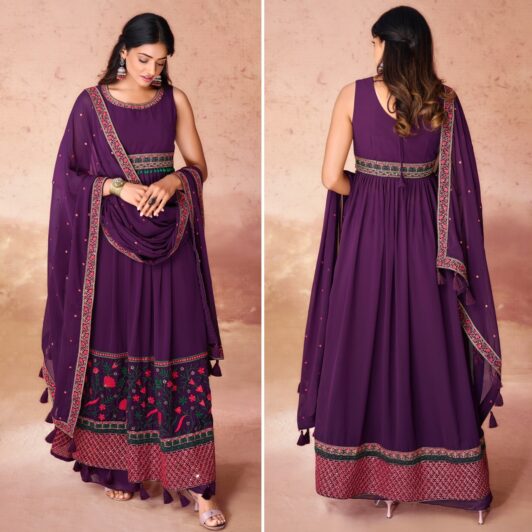 New designer ready made Georgette suit with thread, zari and sequin embroidery work