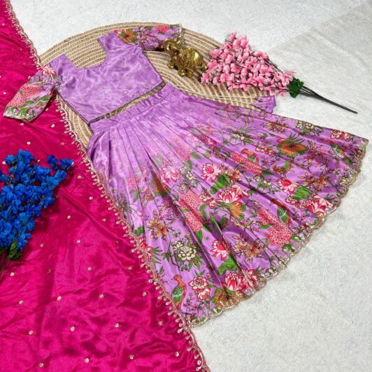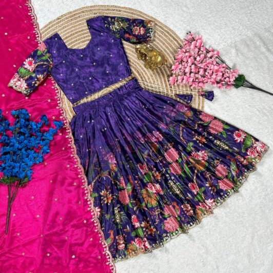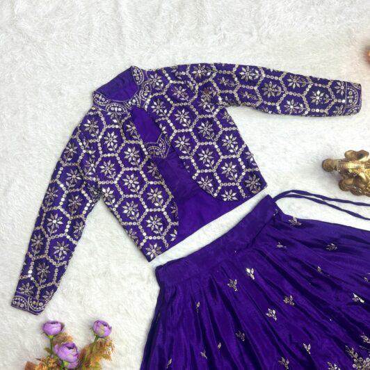 PURPLE CHINNON SILK KIDS READY MADE LEHENGA PREORDER SPECIAL RKT2
