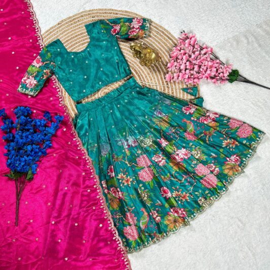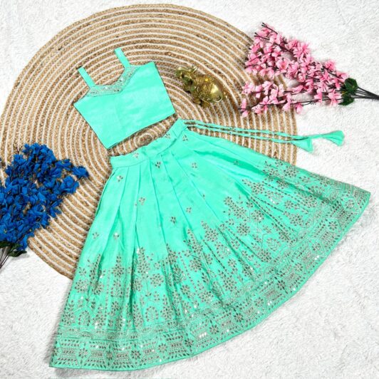 SEA GREEN CHINNON SILK KIDS READY MADE LEHENGA PREORDER SPECIAL RKT2b