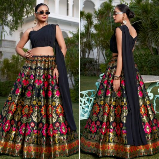 BLACK BANARASI SILK READY MADE LEHENGA READY TO DISPATCH 2018