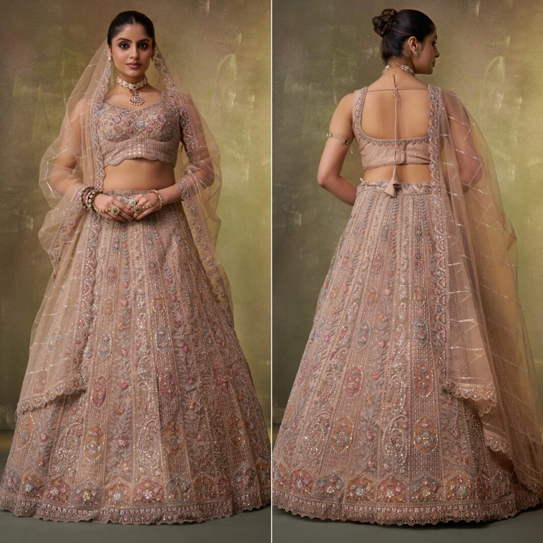 BEIGE SOFT NET LEHENGA PREORDER SPECIAL HOP6249BEI