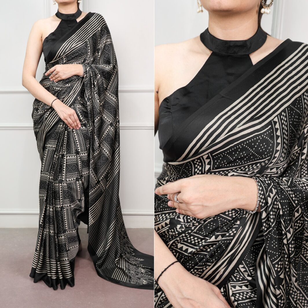 BLACK SATIN SILK SAREE PREORDER SPECIAL LNB7215BLK