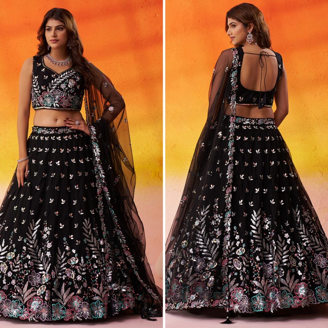 BLACK SOFT NET LEHENGA PREORDER SPECIAL HOP62791BLK