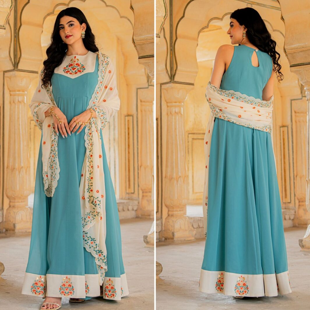 New designer ready made georgette gown with embroidery work