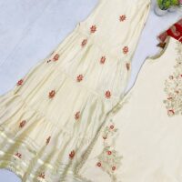 New Bollywood wardrobe team french chinon silk ready made suit with sequin embroidery work