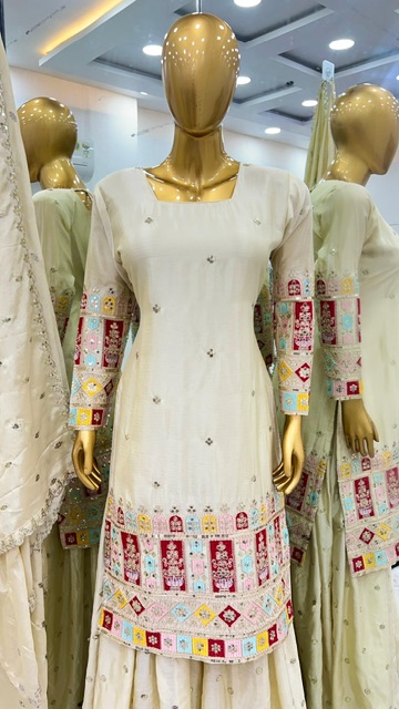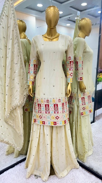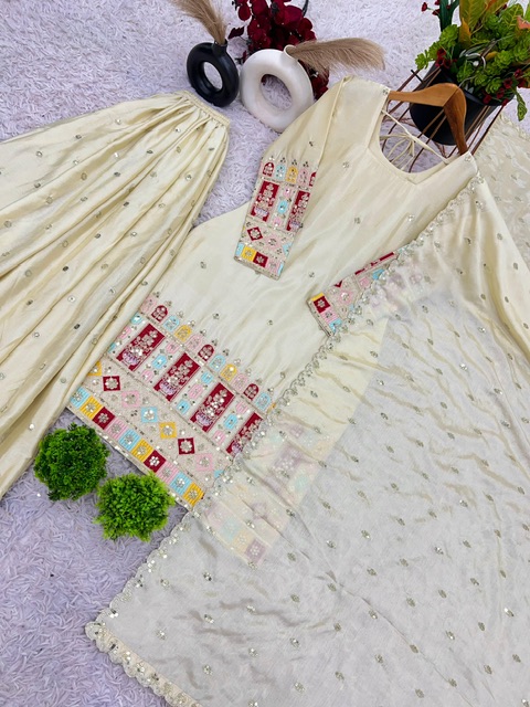New Bollywood wardrobe team chinon silk suit with sequin embroidery work
