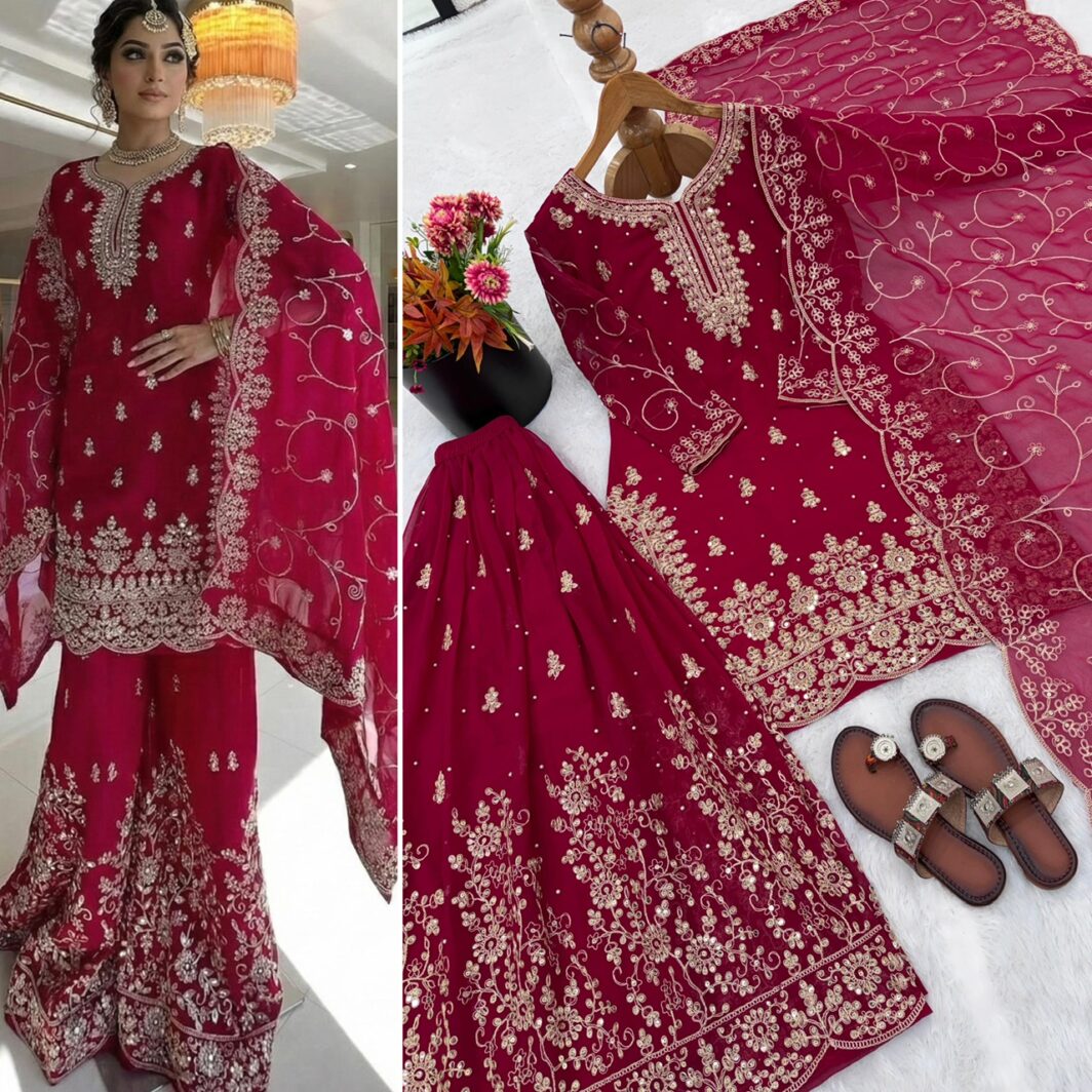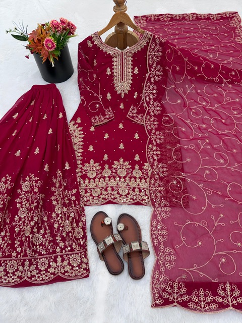 New Bollywood wardrobe team fancy silk palazzo suit with sequin embroidery work