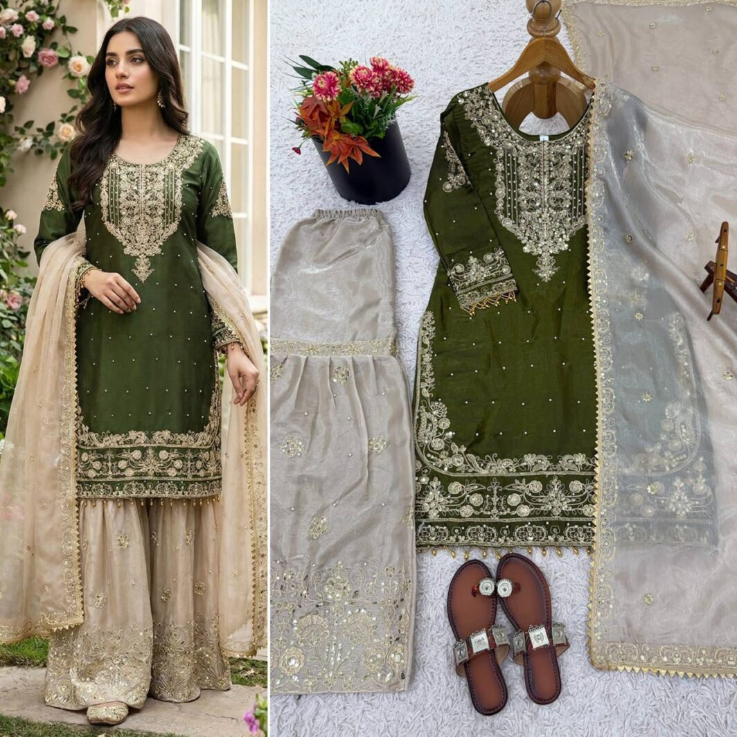 New Bollywood wardrobe team fancy silk palazzo suit with sequin embroidery work